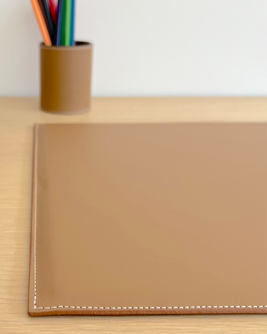 Handmade in the South of France from full-grain, vegetable-tanned leather, this desk pad gives you a smooth, stable surface for writing and work. The double-leather build with a soft lining adds a touch of cushion while protecting your desk from marks and scratches. Clean lines, precise stitching, and colours that pair with the rest of the collection.