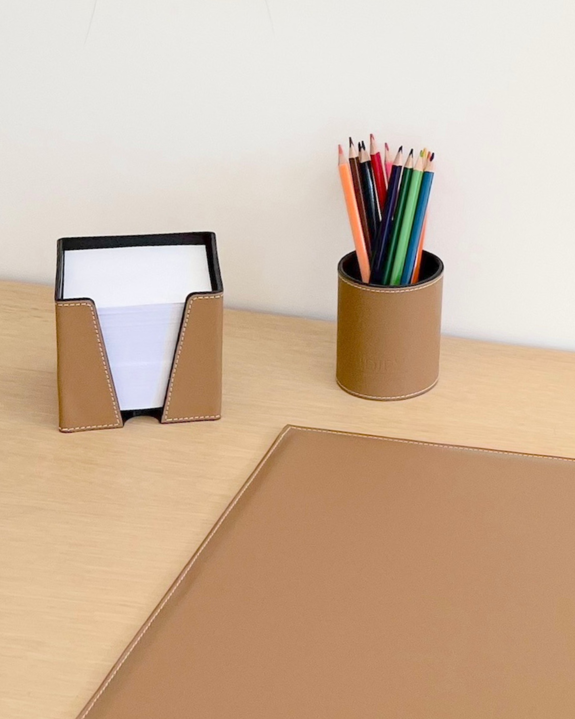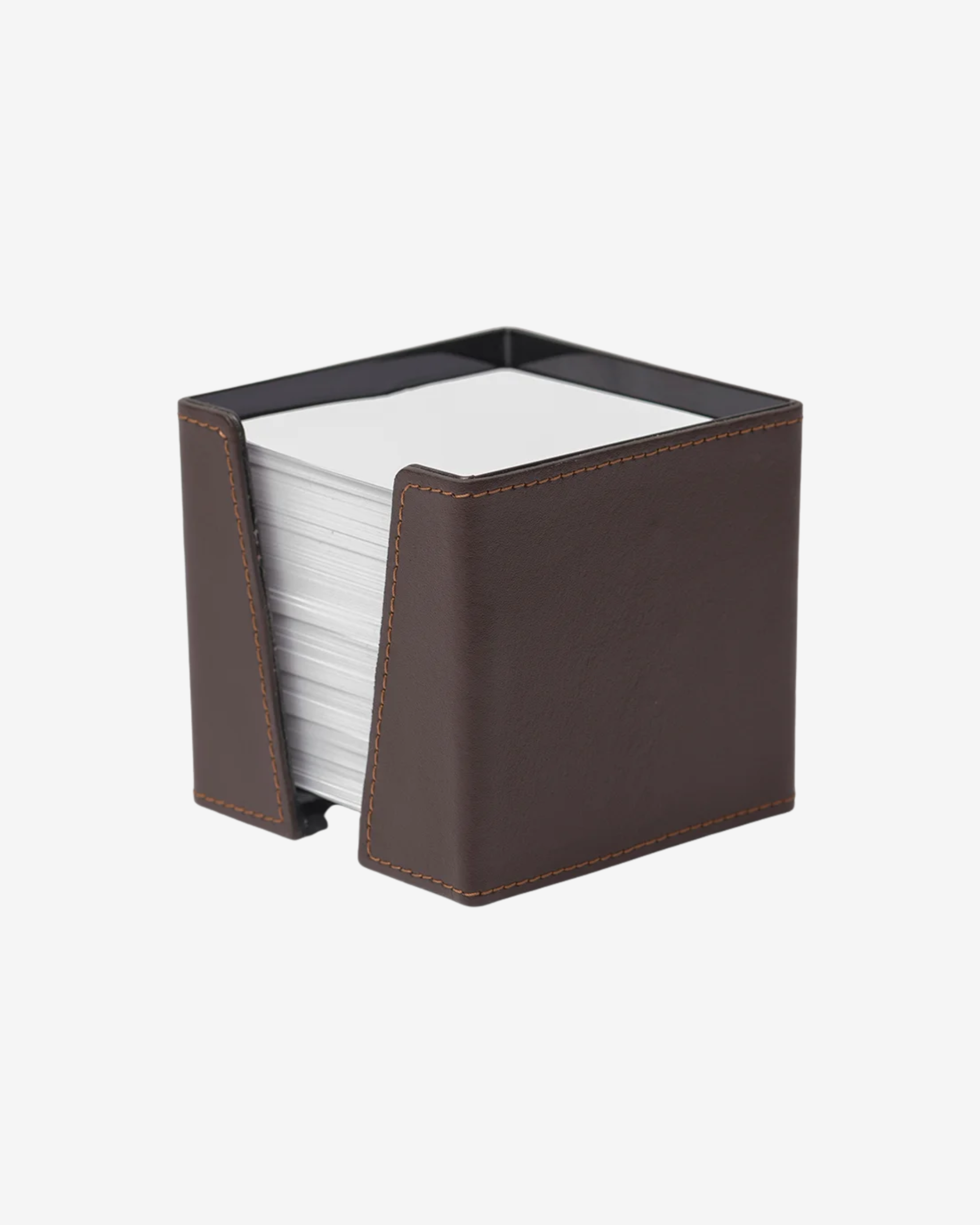 Handcrafted in France from full-grain, vegetable-tanned leather, this memo pad holder keeps your notes neatly at hand with effortless elegance. Its clean, structured shape fits standard memo paper refills, while the stitched edges and smooth leather surface lend a touch of refinement to your workspace.