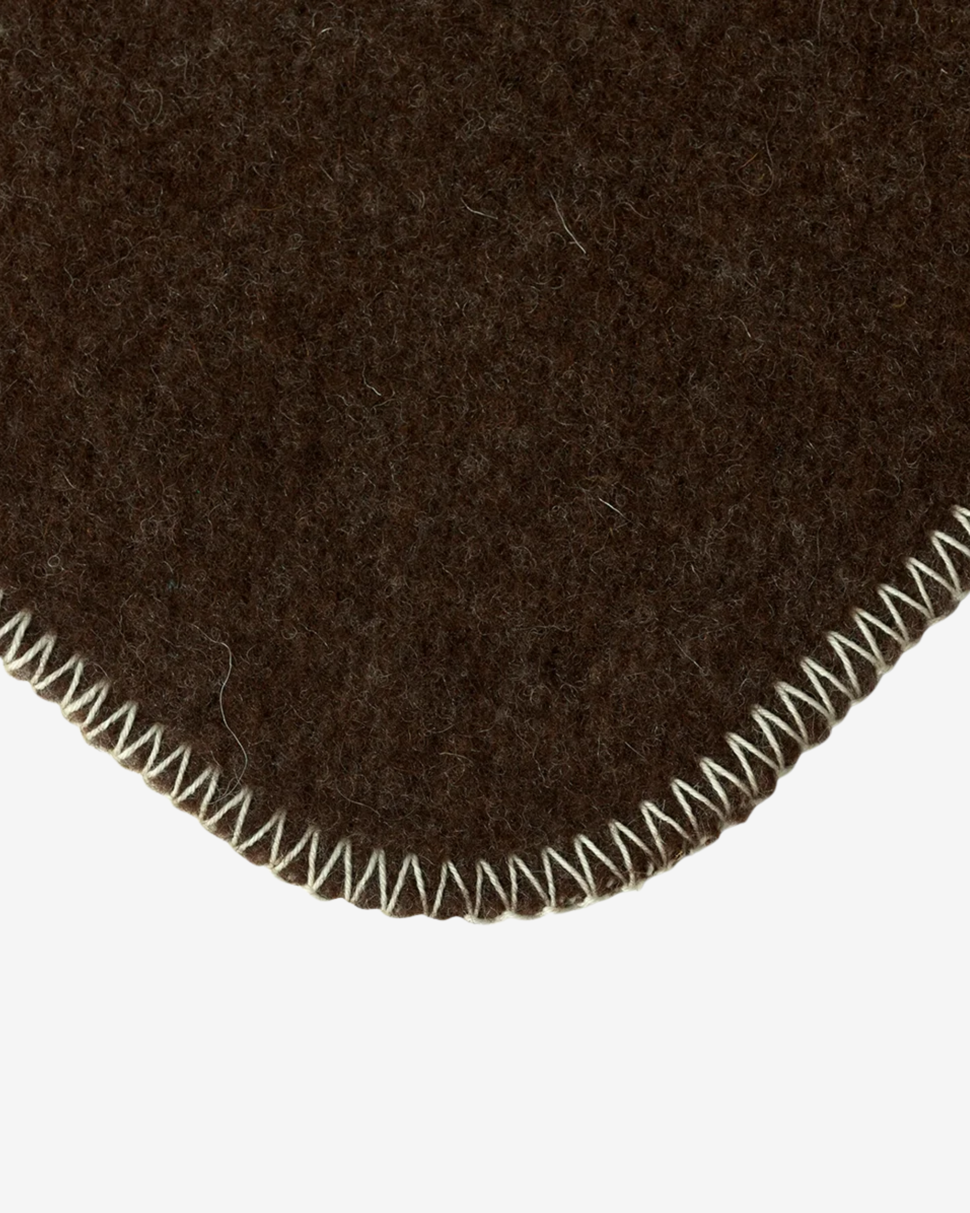 Woven in the South of France from undyed French wool, this blanket combines the warmth of natural fibres with a quietly refined design. Its rich chocolate tone comes entirely from the wool itself, finished by hand with an ecru cotton stitch for subtle contrast. Rolled in a handmade leather holder, it’s made to bring comfort wherever you use it — from living room to terrace.