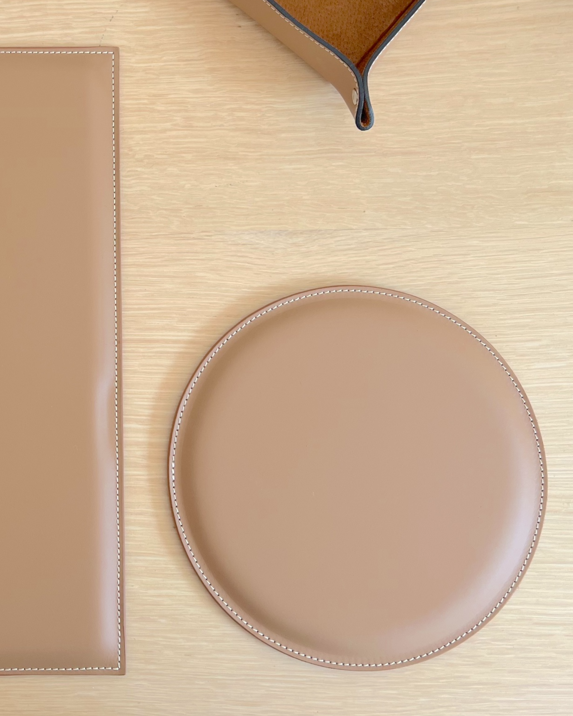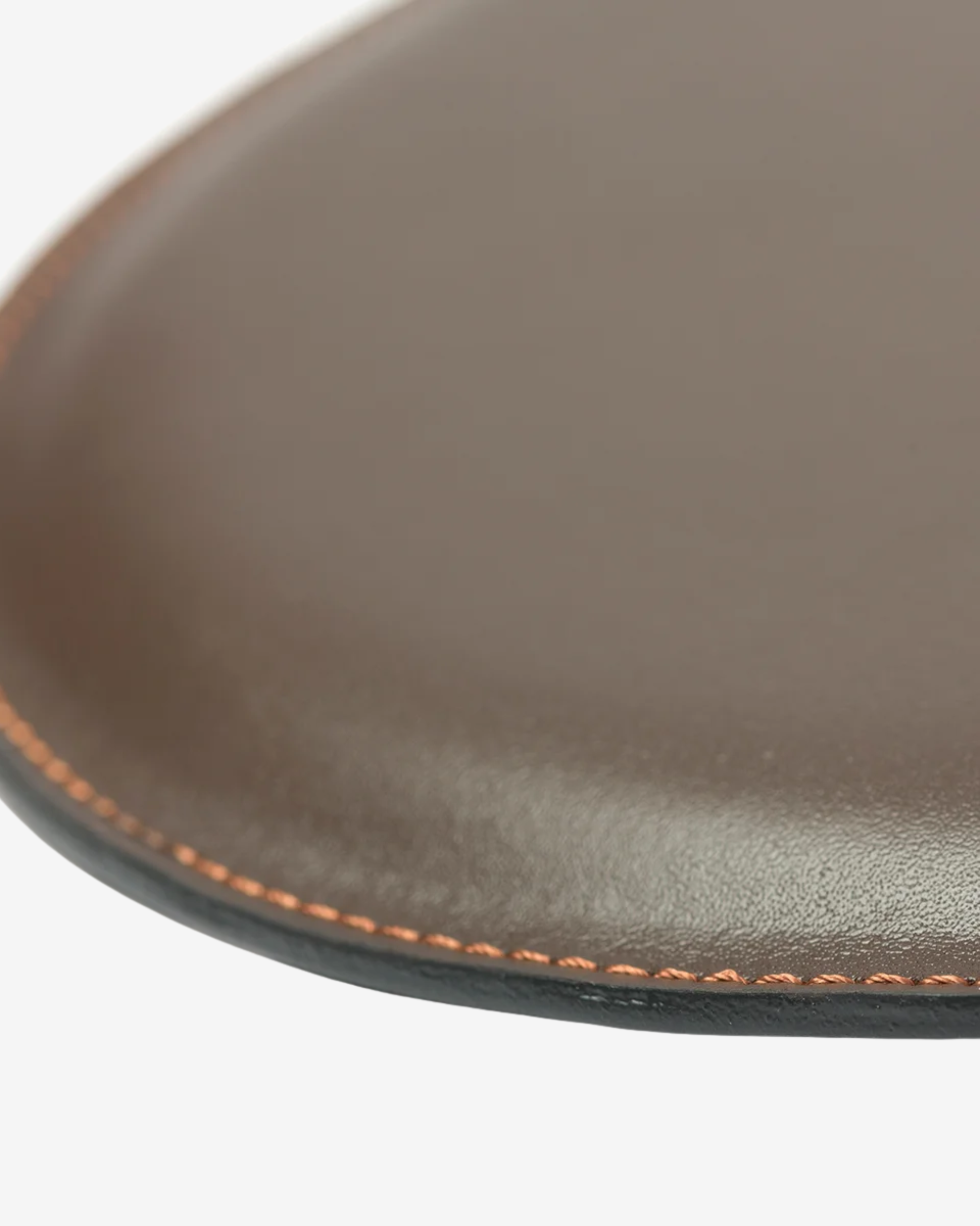 Handmade in the South of France from full-grain, vegetable-tanned leather, this mouse pad brings a refined simplicity to your desk. The smooth double-leather surface glides gently under your hand, while a soft lining underneath adds comfort and grip. Finished with precise double stitching, it’s crafted to age beautifully and last through years of daily use.