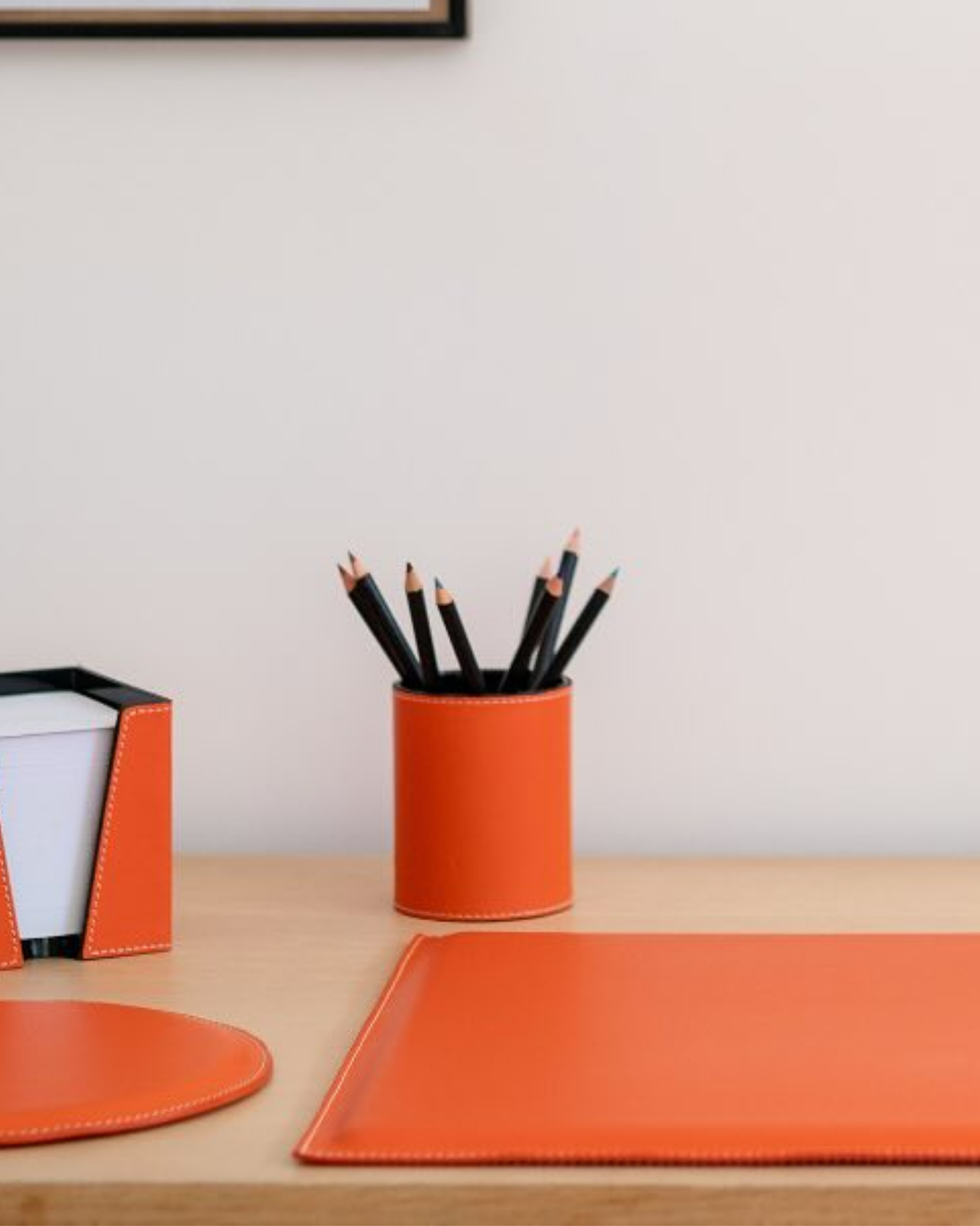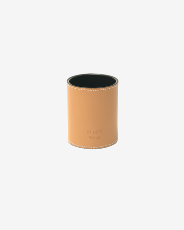 Handmade in the South of France, this pen cup combines clean design with traditional craftsmanship. Cut and stitched from vegetable-tanned leather, it develops a soft patina over time while keeping your workspace neat and elegant. The ecru stitching adds a discreet touch of contrast that will elevate any desk or home office.