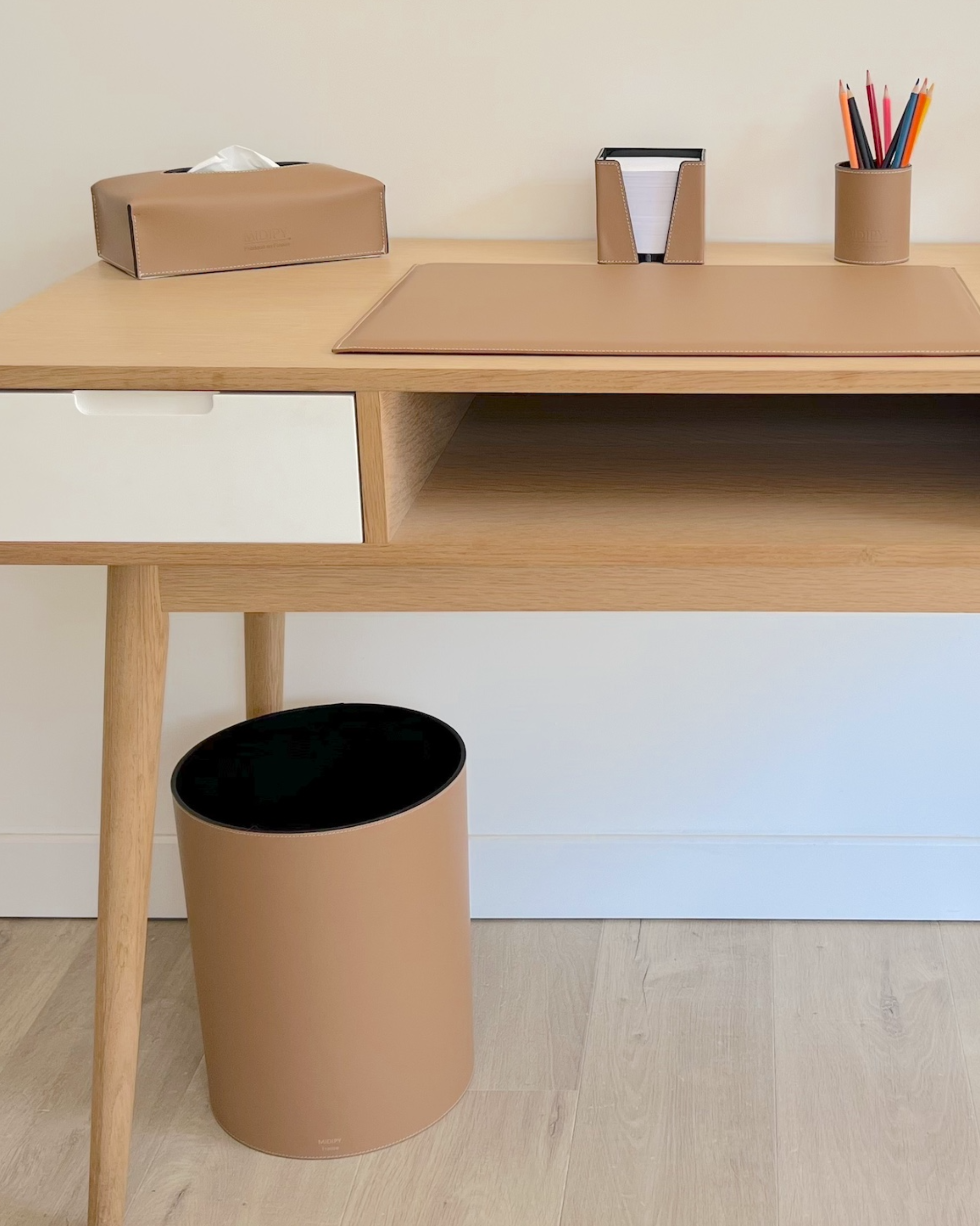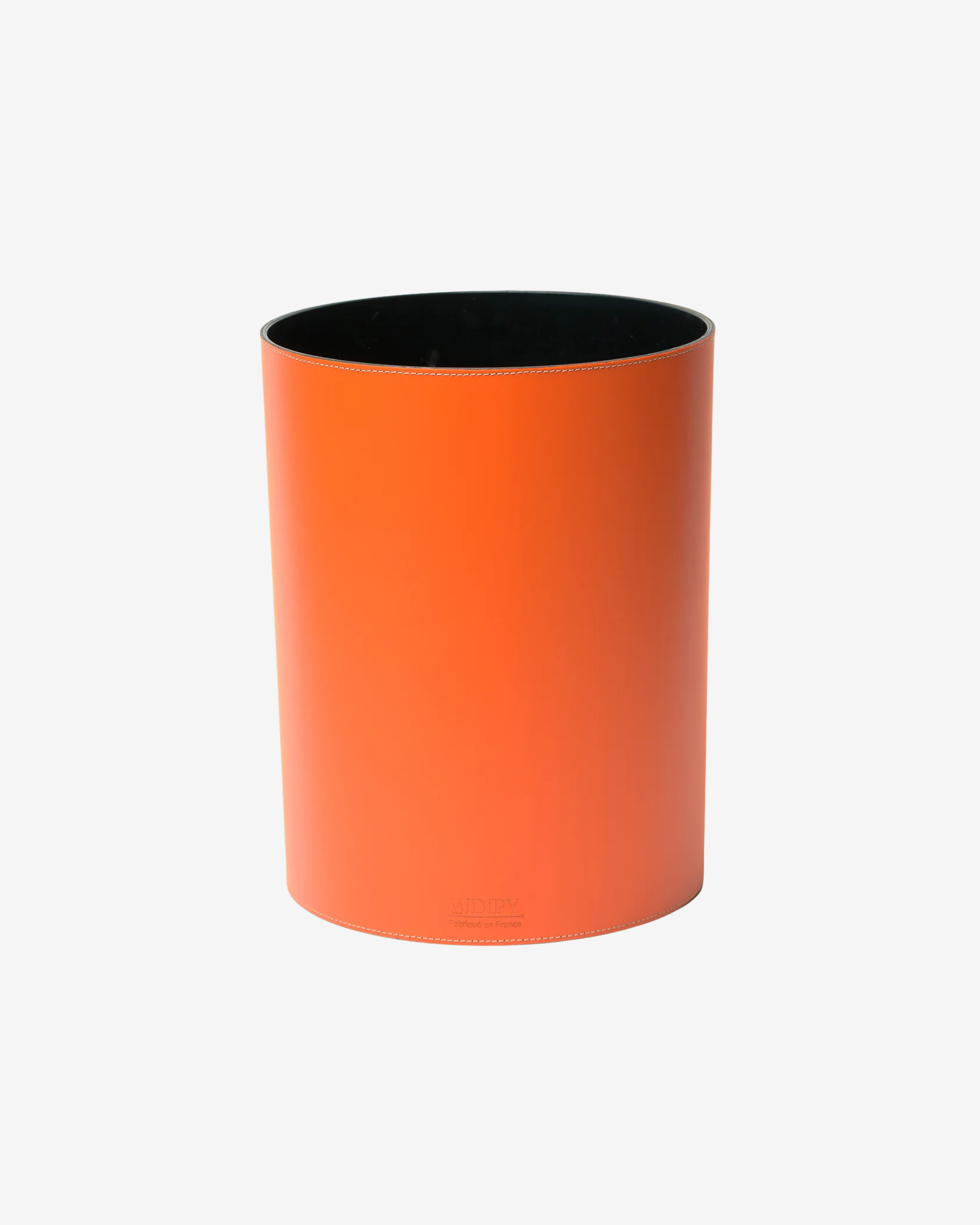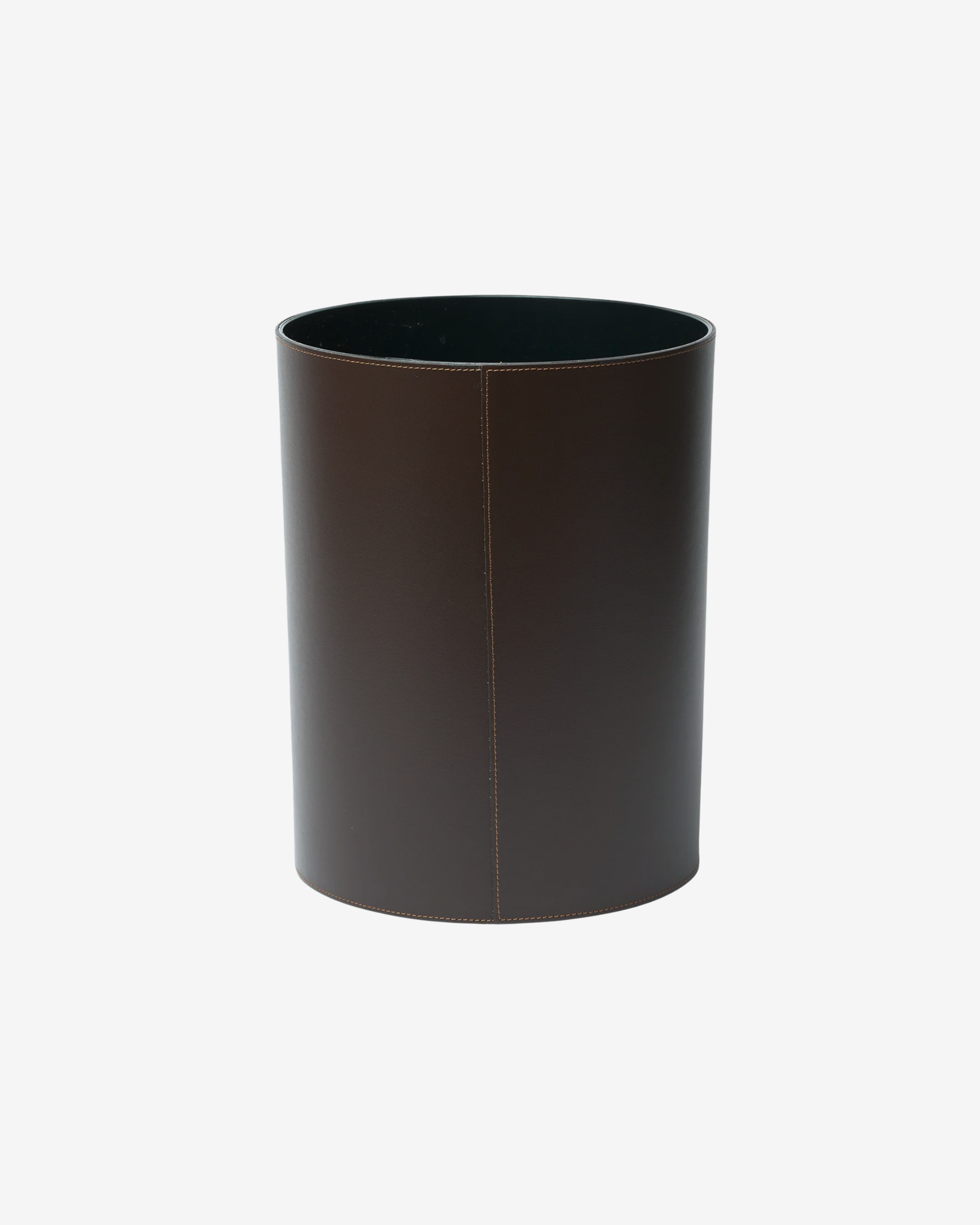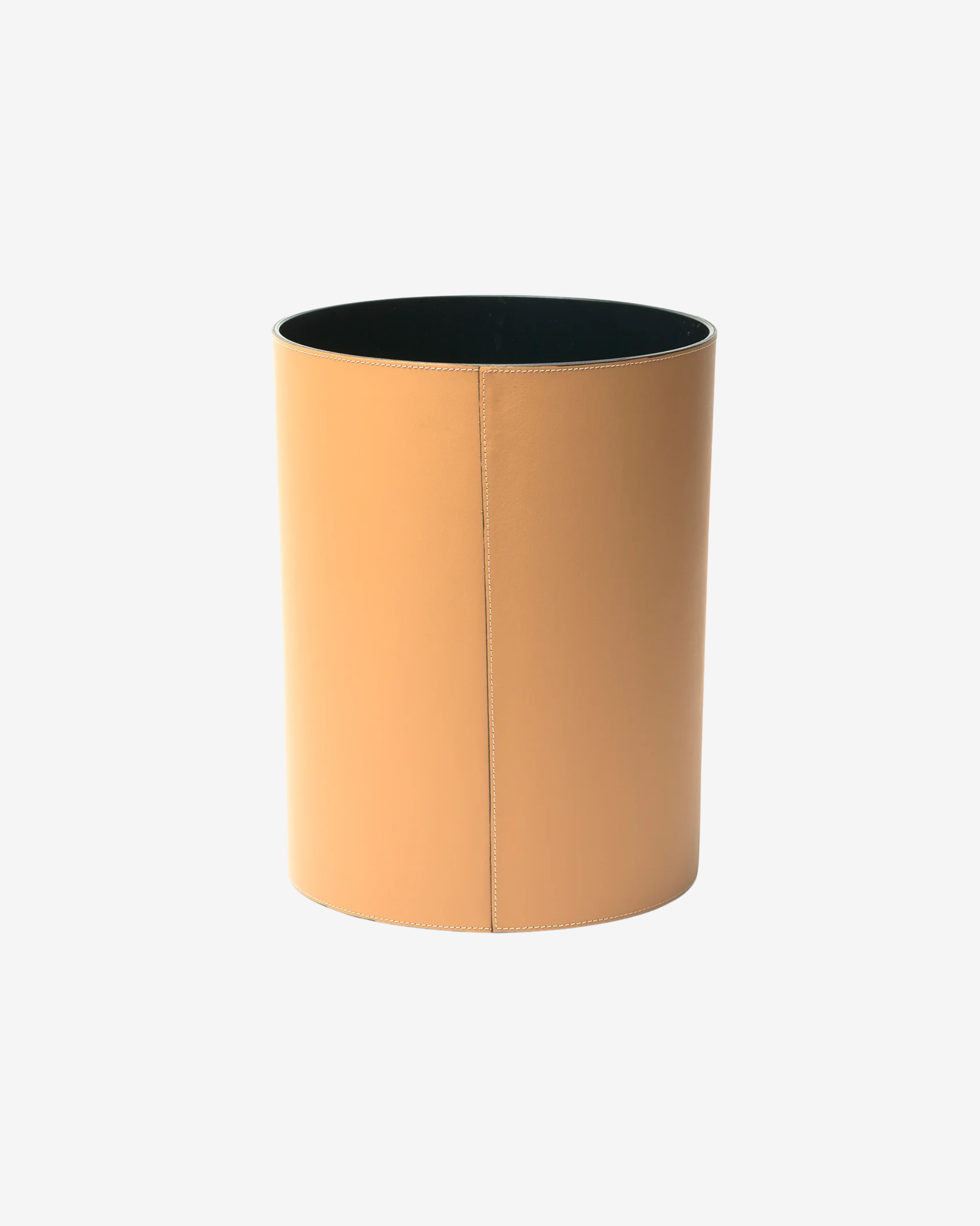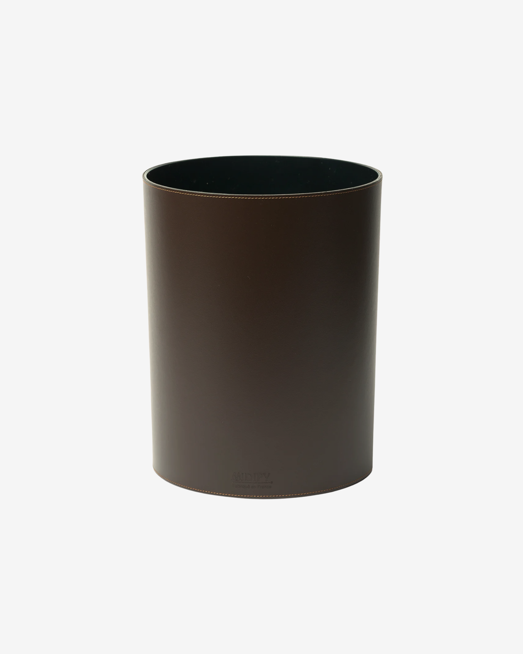 Handmade in France from full-grain, vegetable-tanned leather, this wastepaper bin brings quiet sophistication to the office or home. Its smooth leather exterior and sleek silhouette give even the most functional corner a refined touch. The interior is lined in durable black resin for easy cleaning and daily use.