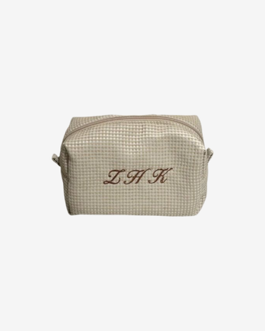 Handcrafted in Spain from 100% cotton waffle fabric, the Capuccino Custom Toiletry Bag features a matching stain-resistant poplin lining and is finished with a nylon zipper and elegant gold-toned closure. Durable and practical, yet refined in detail, it’s designed to withstand daily use while adding a touch of warmth and style. Personalise it with your initials for an accessory that feels truly your own.