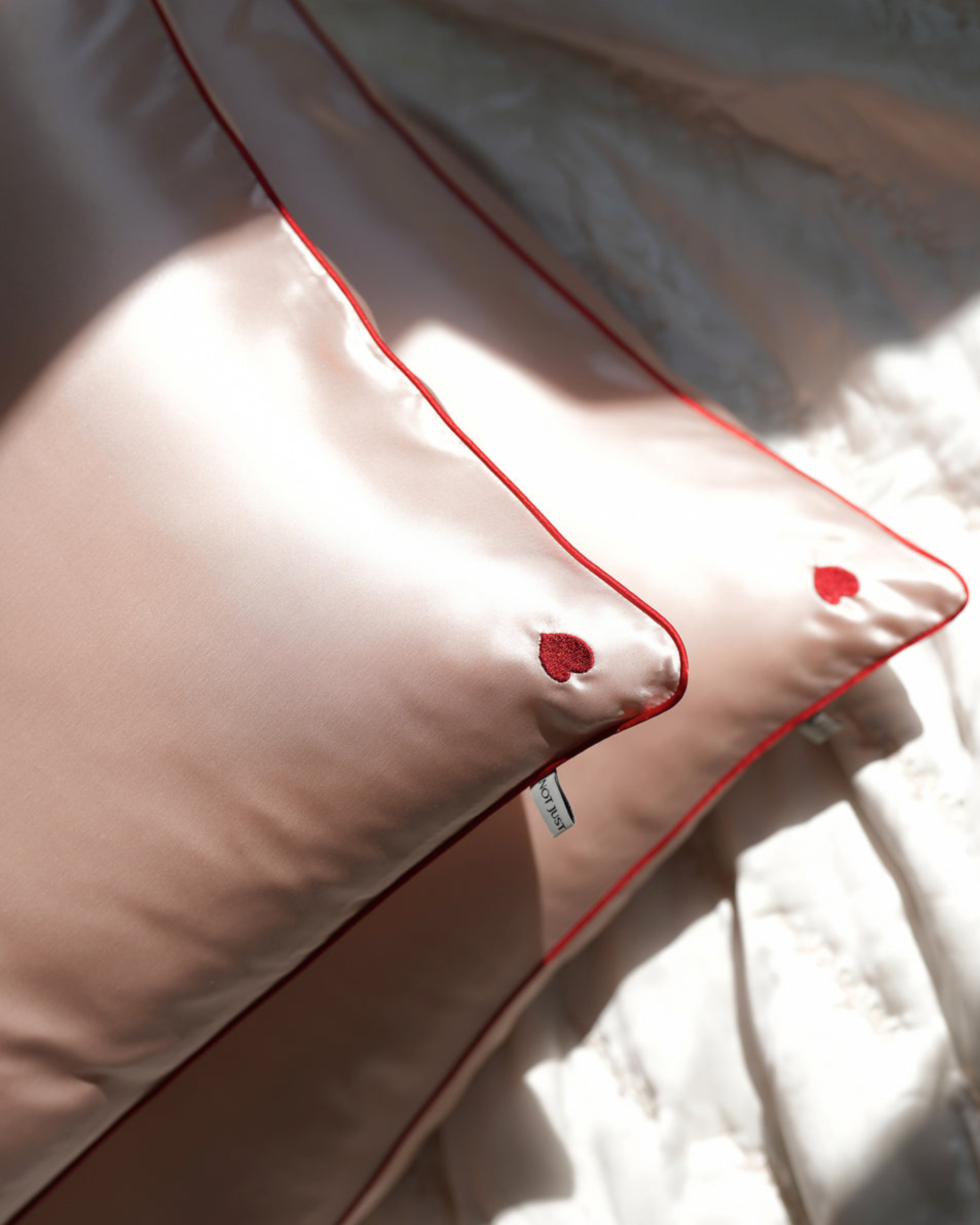 Slip into serenity with the Cupid Heart Silk Pillowcase — a love letter to restful sleep. Crafted from 100% mulberry silk, it glides effortlessly against your skin, reducing friction to prevent creases and protect hair from breakage. Naturally breathable and temperature-regulating, it keeps you cool in summer and cozy in winter. The delicate embroidered heart detail adds a touch of romance, while optional personalization makes it a truly meaningful gift.