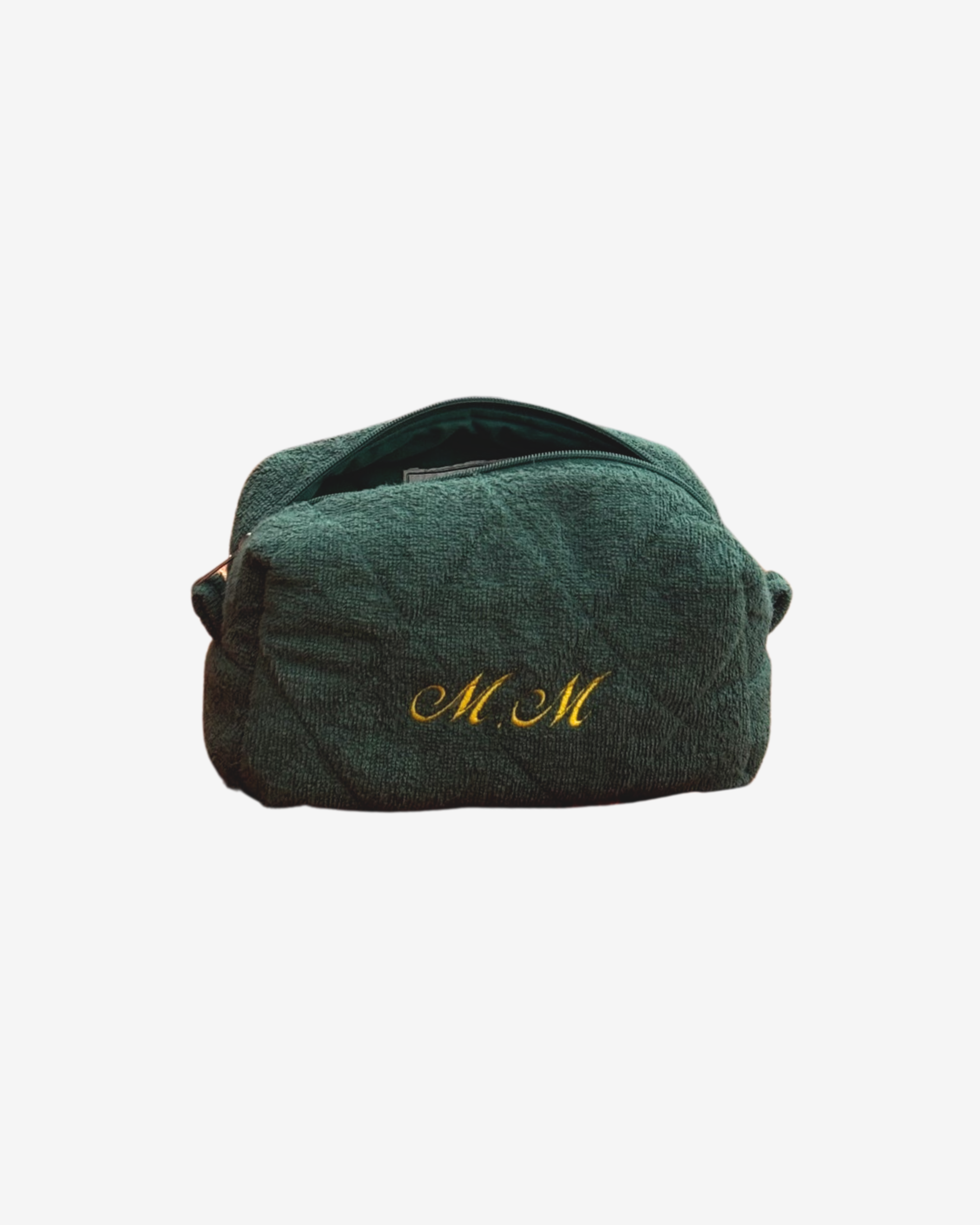 Handcrafted in Spain from 100% cotton terry cloth, the Rolex Green Custom Toiletry Bag is lined with poplin to resist stains and designed for daily use, travel, or the beach. Personalise it with your initials to create a one-of-a-kind accessory that combines style and practicality.