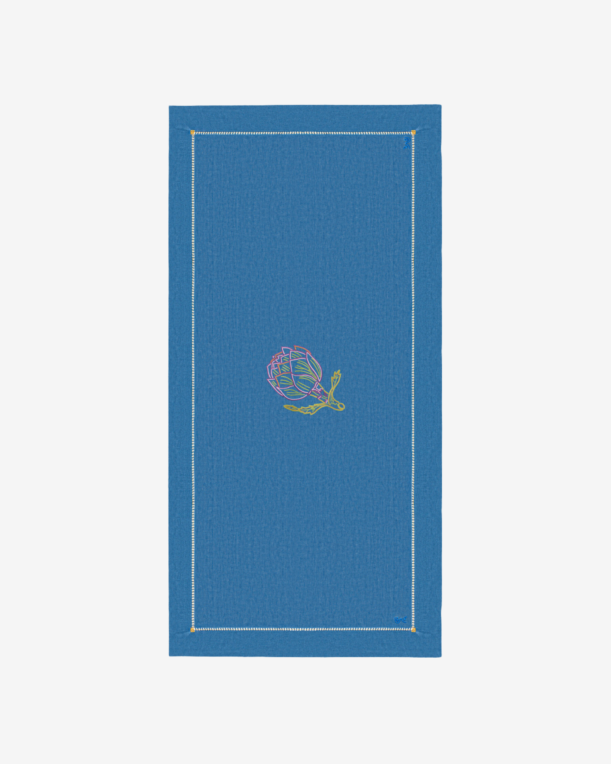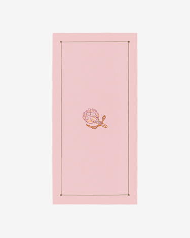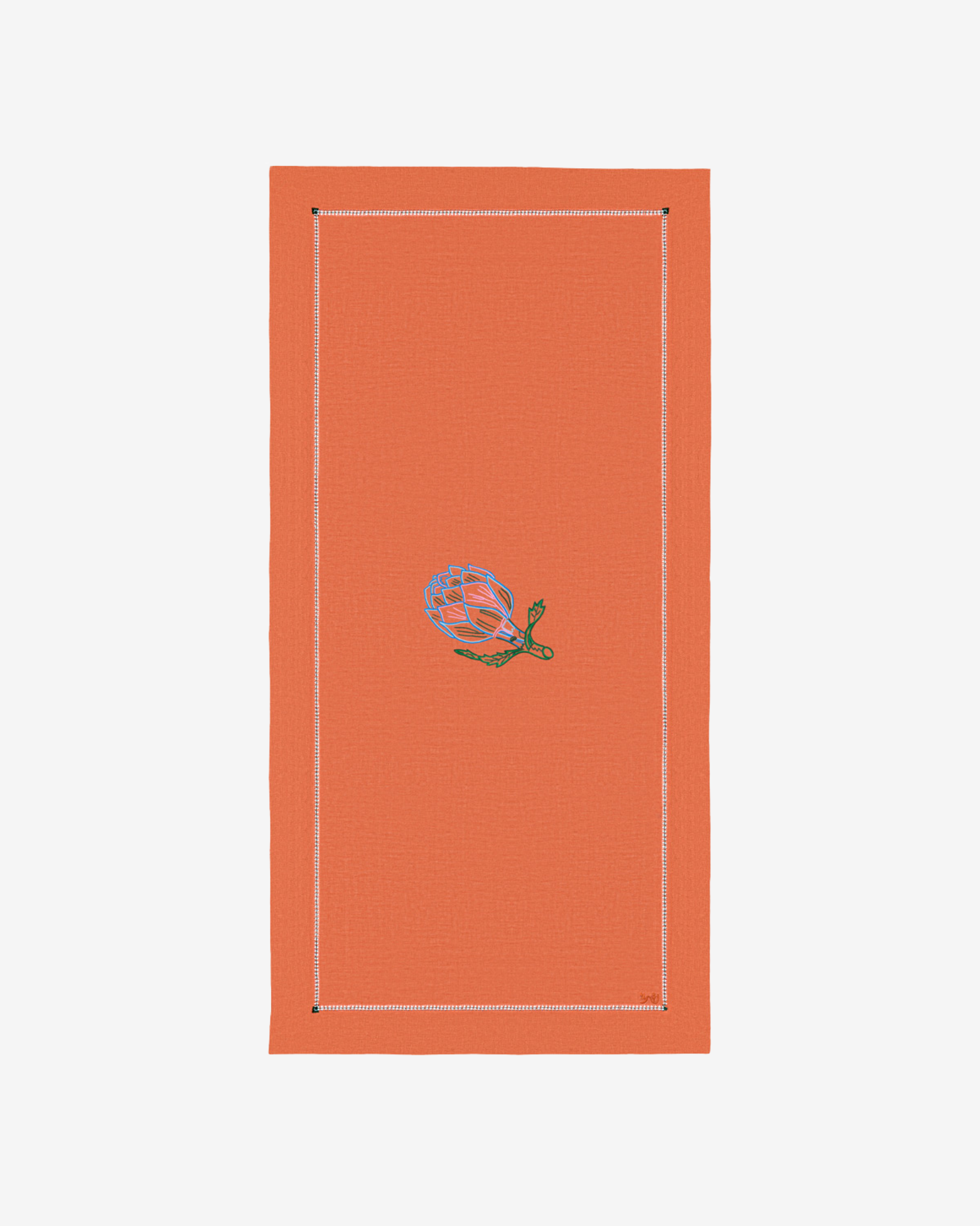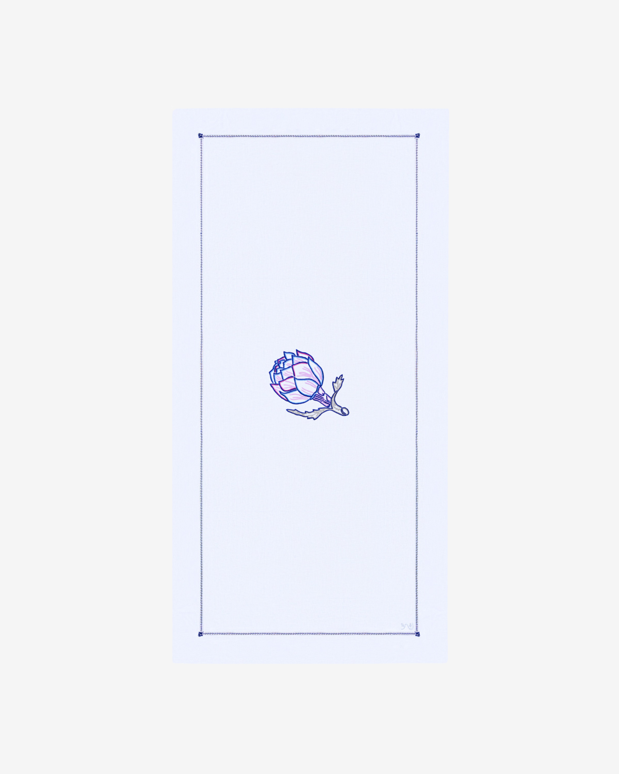 Celebrating the artichoke’s elegant silhouette, this embroidered linen table runner brings sculptural charm and quiet sophistication to any dining table. Each motif is hand-embroidered by Portuguese artisans, taking over fourteen hours to complete, while the open-hem finish adds a subtle decorative touch. Whether used alone or paired with other pieces from the Alcachofra collection, it creates a harmonious and timeless setting for gatherings.