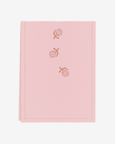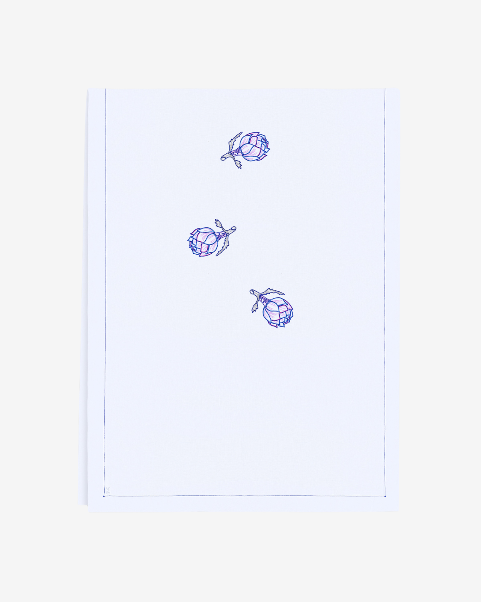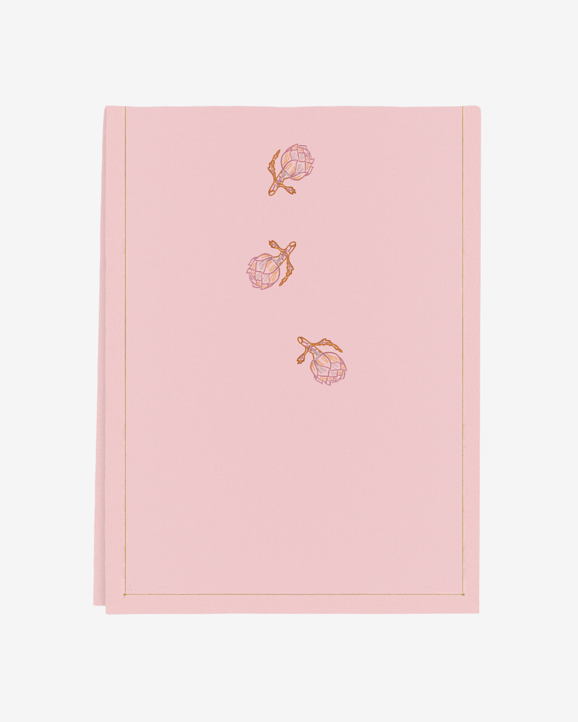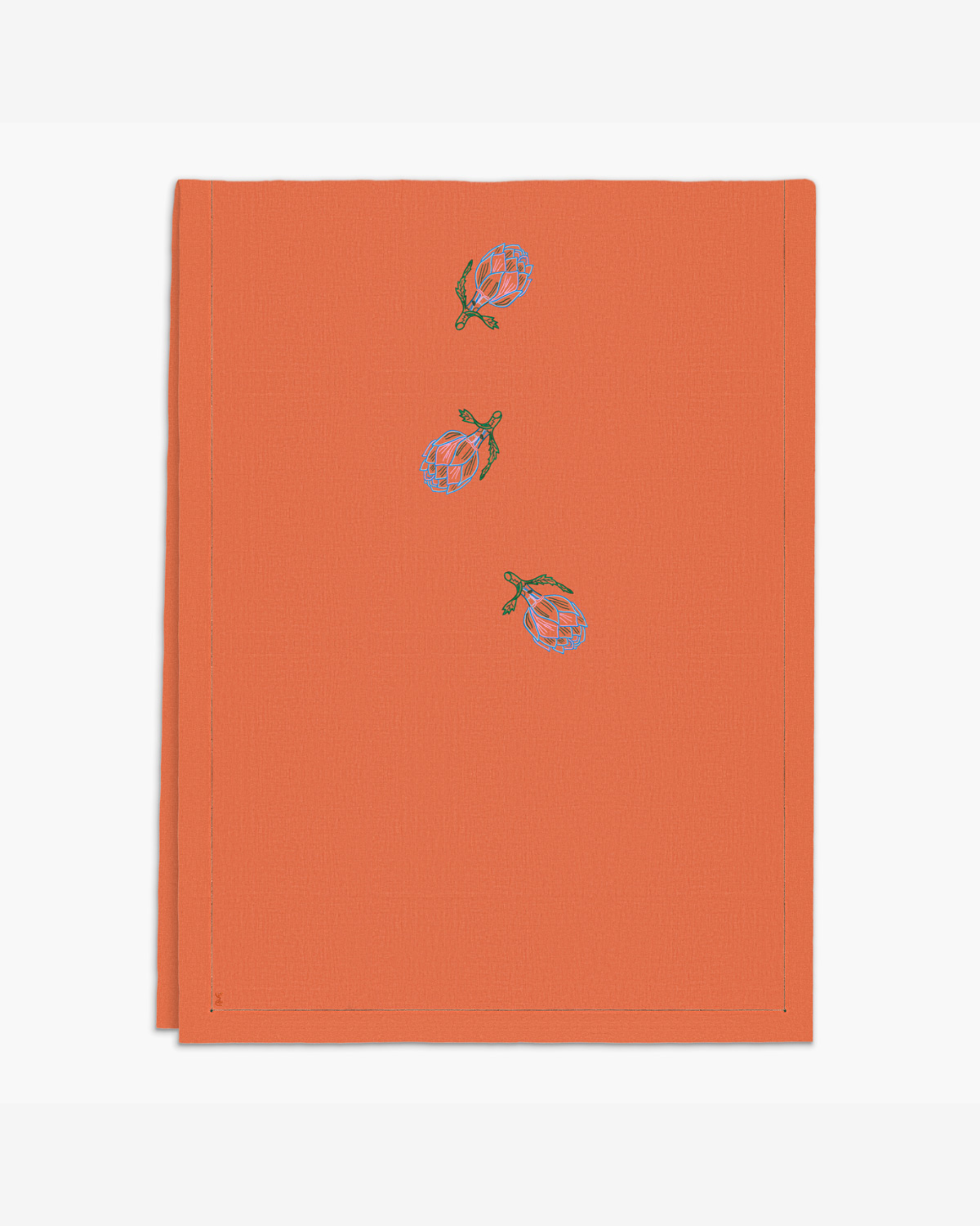 Embodying the sculptural elegance of the artichoke, this embroidered linen tablecloth makes a striking centrepiece for long, convivial gatherings. Each motif is hand-embroidered by Portuguese artisans, requiring over fourteen hours of meticulous work, and bordered by refined open hems that enhance its artisanal charm. Its generous proportions offer a timeless foundation for memorable celebrations. Pair with other pieces from the Alcachofra collection to complete the setting.