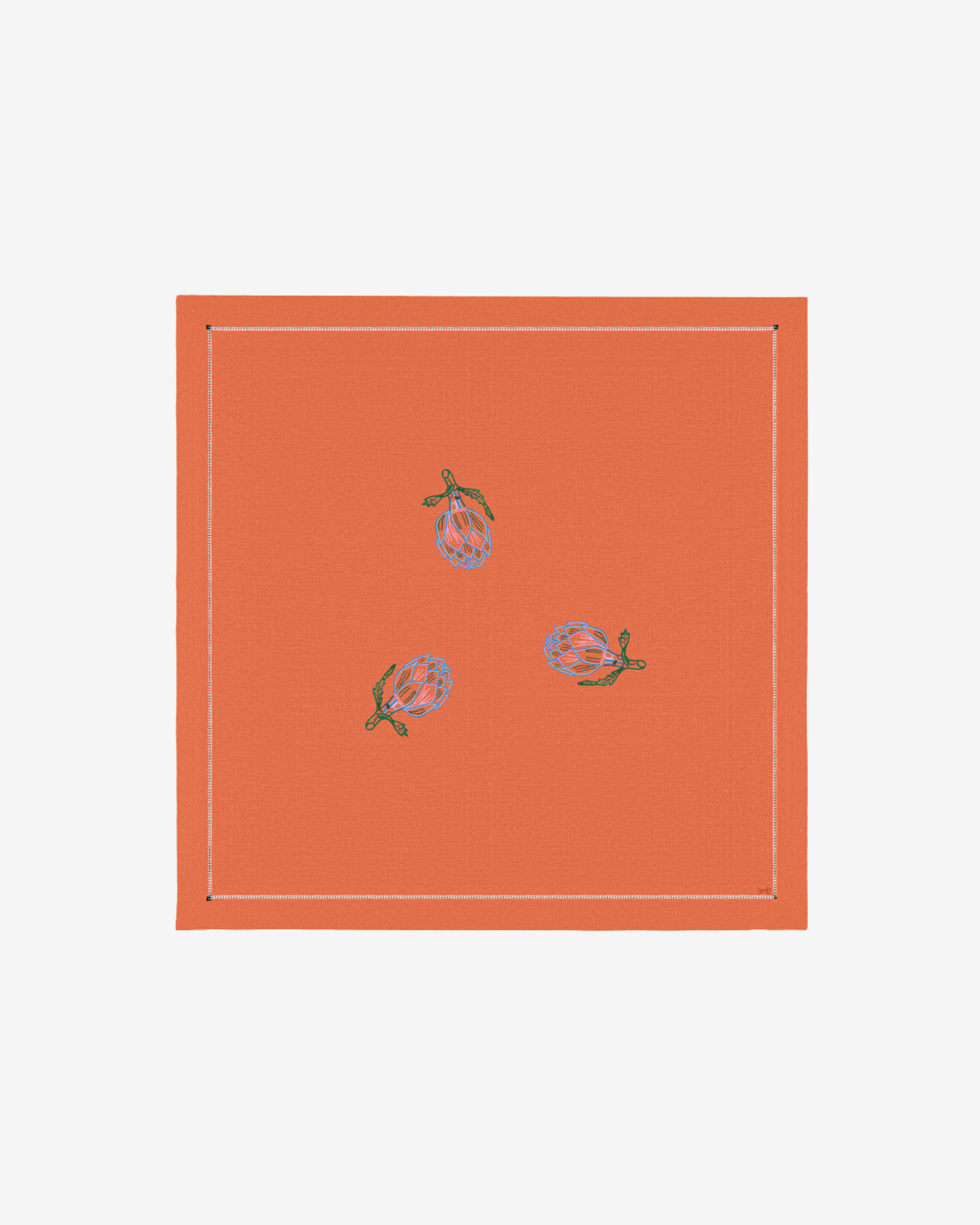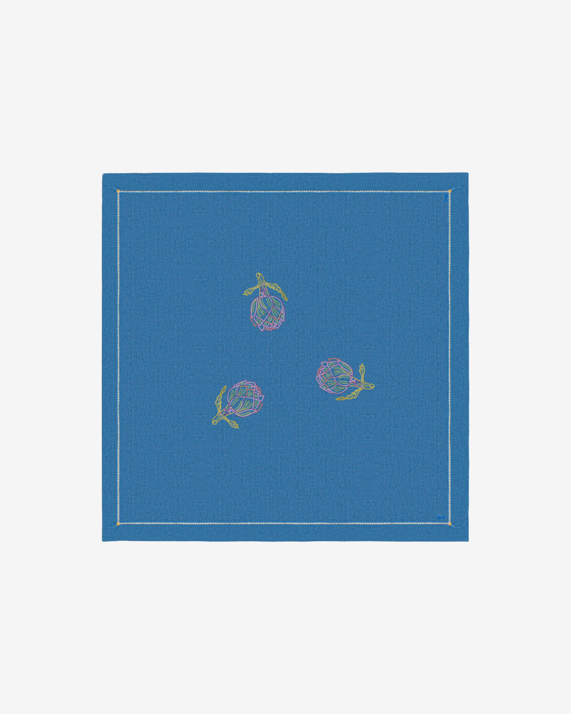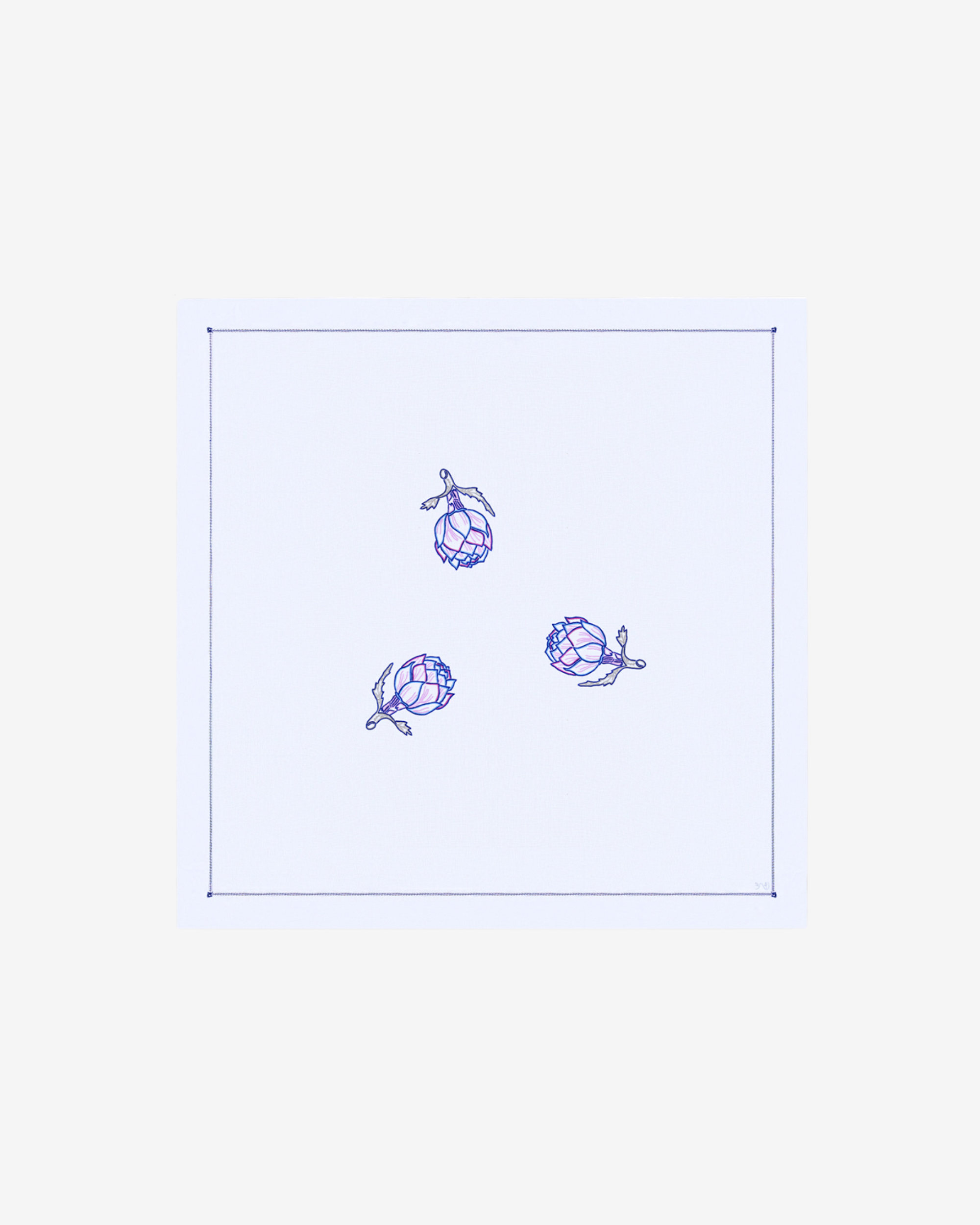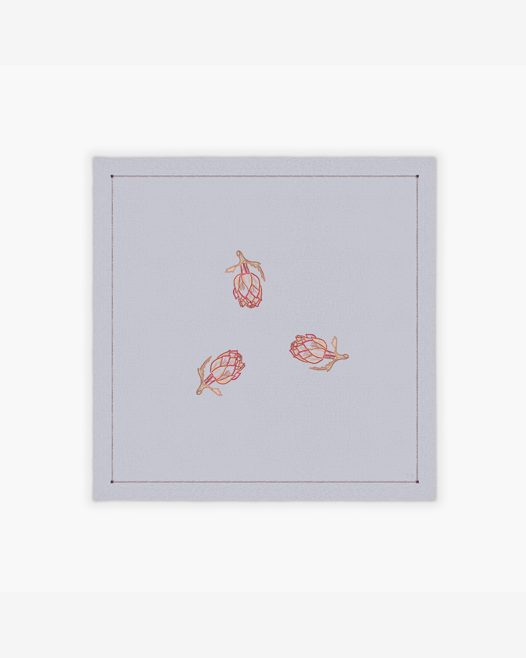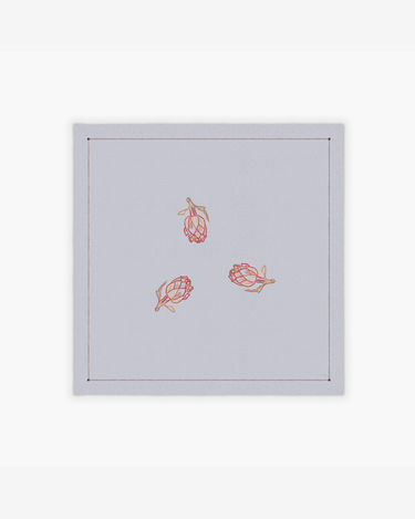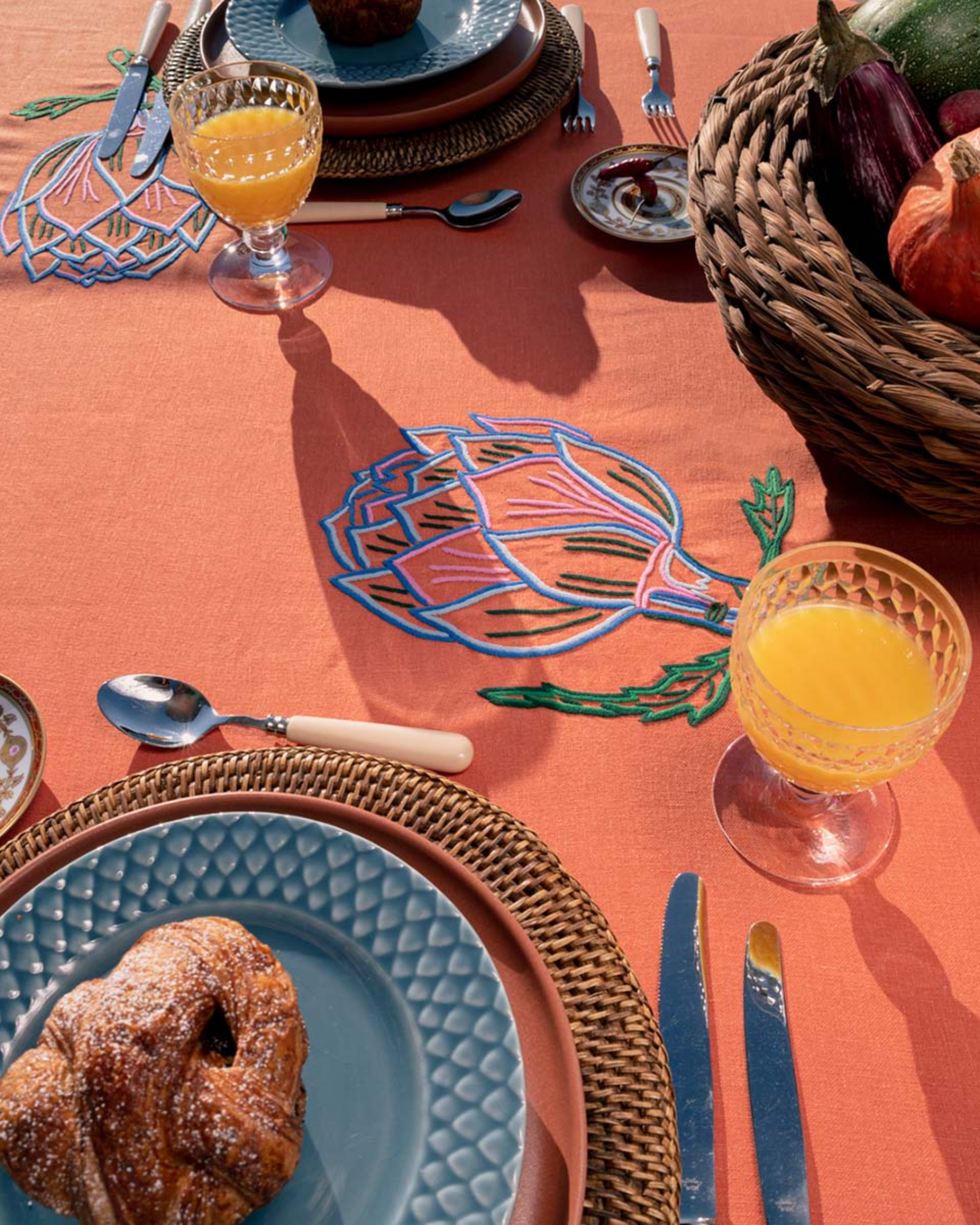 With its intricate artichoke motif, this embroidered linen tablecloth adds sculptural elegance and a sense of occasion to any table. Each design is hand-stitched by Portuguese artisans, taking over fourteen hours to complete, and framed by open hems that highlight its craftsmanship. The result is a refined foundation for both casual gatherings and festive celebrations. Combine with the runner and placemats from the Alcachofra collection for a complete, harmonious setting.
