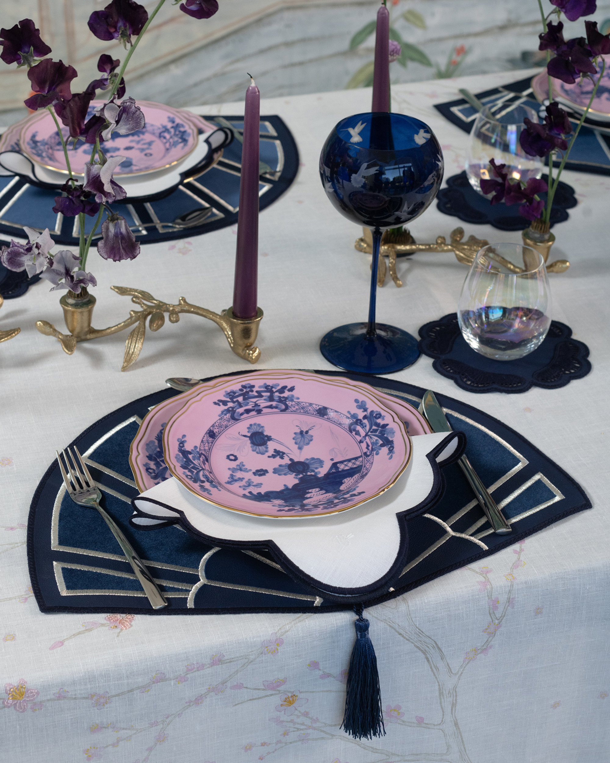 With their fan-like shape, The Orangery placemats add character and flow to any setting while staying perfectly functional and versatile. Crafted from high-quality faux leather with a soft velvet accent, each piece is durable, tactile, and easy to care for. A distinctive gift for those who appreciate originality.