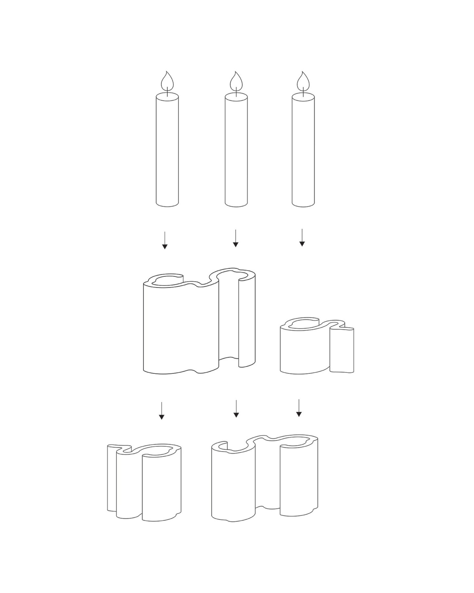 The design invites endless configurations, from simple pairings to sculptural centerpieces, much like a living alphabet of light. A striking object that merges creativity with ritual, and a thoughtful gift for design lovers.