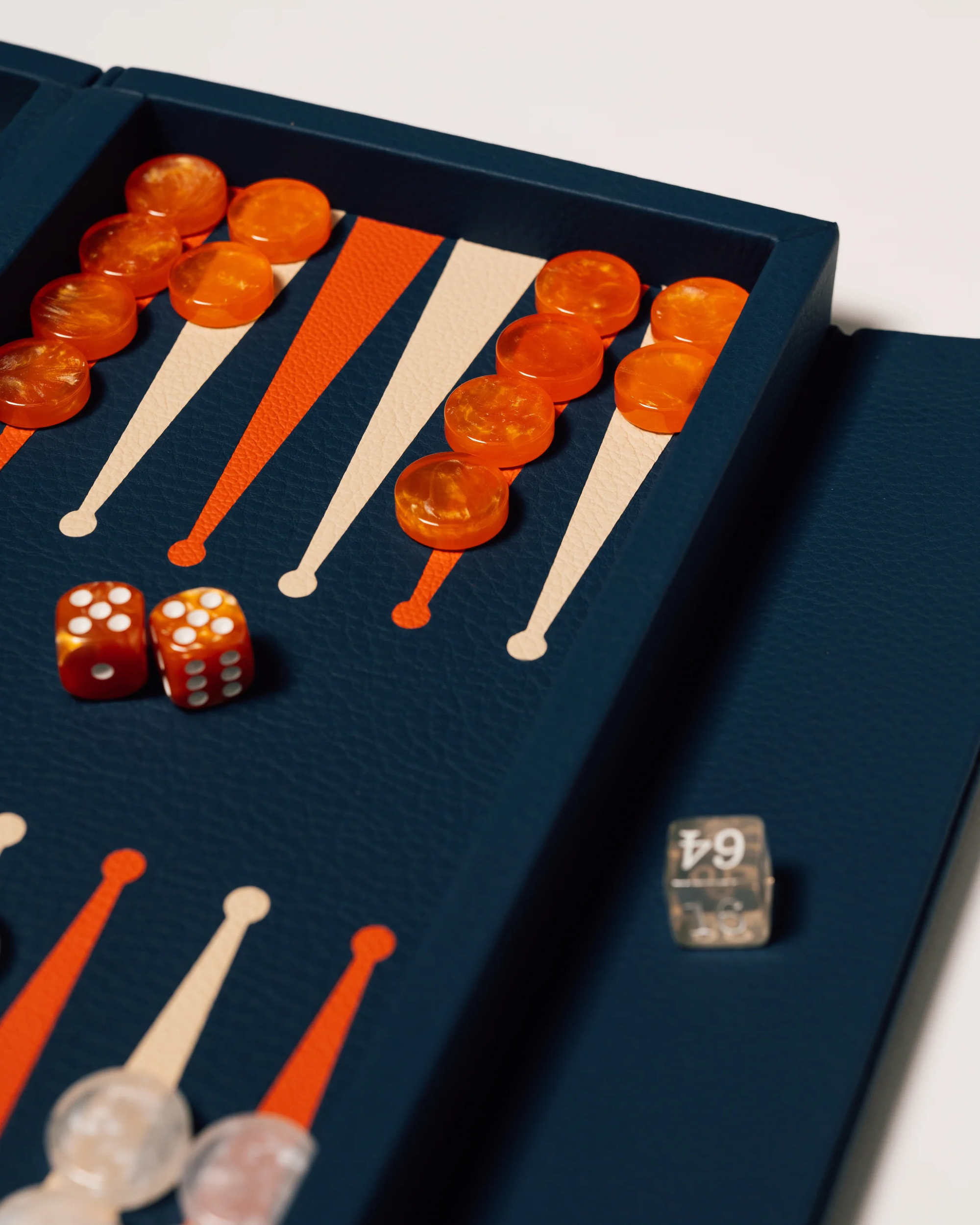 Este folleto de backgammon de cuero es compacto, bellamente hecho y diseñado para encajar perfectamente en tu vida—ya sea en casa, en un viaje o empacado para un fin de semana. Está hecho de cuero real, con marcas naturales que hacen que cada uno se sienta personal. El tablero se pliega para revelar un diseño limpio y audaz con triángulos de colores y un cierre magnético suave que mantiene todo en su lugar. En su interior, incluye todo lo que necesitas: 30 piedras de resina, cuatro dados y un cubo de duplicación.