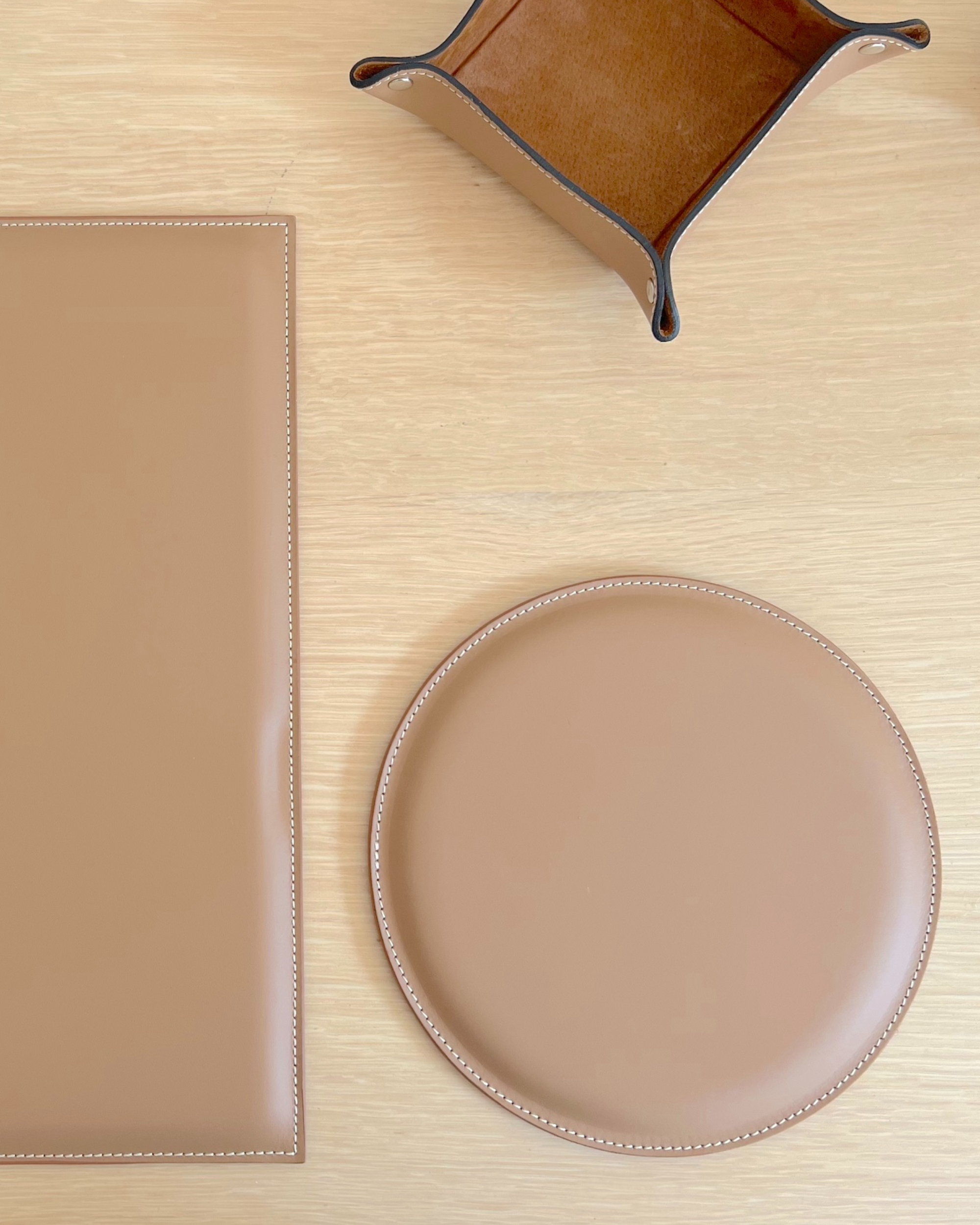 Hecho a mano en el sur de Francia con cuero de grano completo y curtido vegetal, esta alfombrilla para ratón aporta una simplicidad refinada a su escritorio. La suave superficie de doble cuero se desliza suavemente bajo su mano, mientras que un forro suave debajo añade comodidad y agarre. Terminado con una precisa costura doble, está diseñado para envejecer hermosamente y durar a través de años de uso diario.