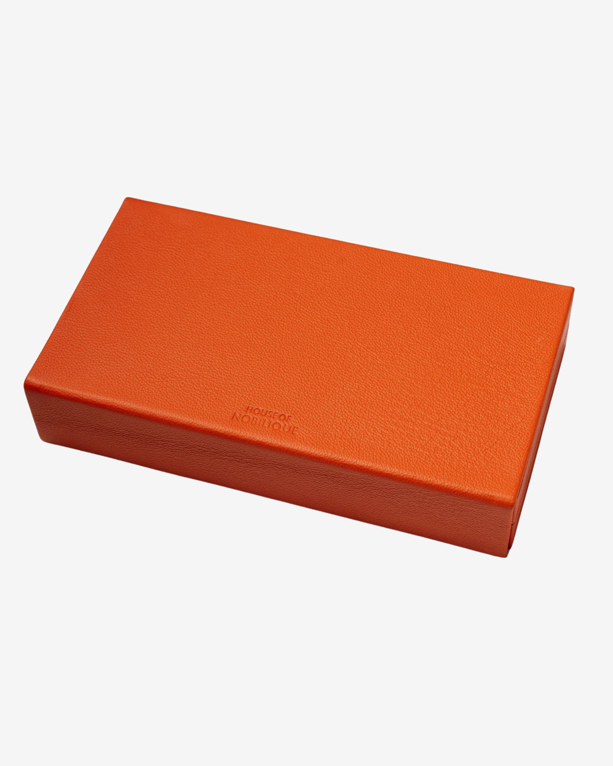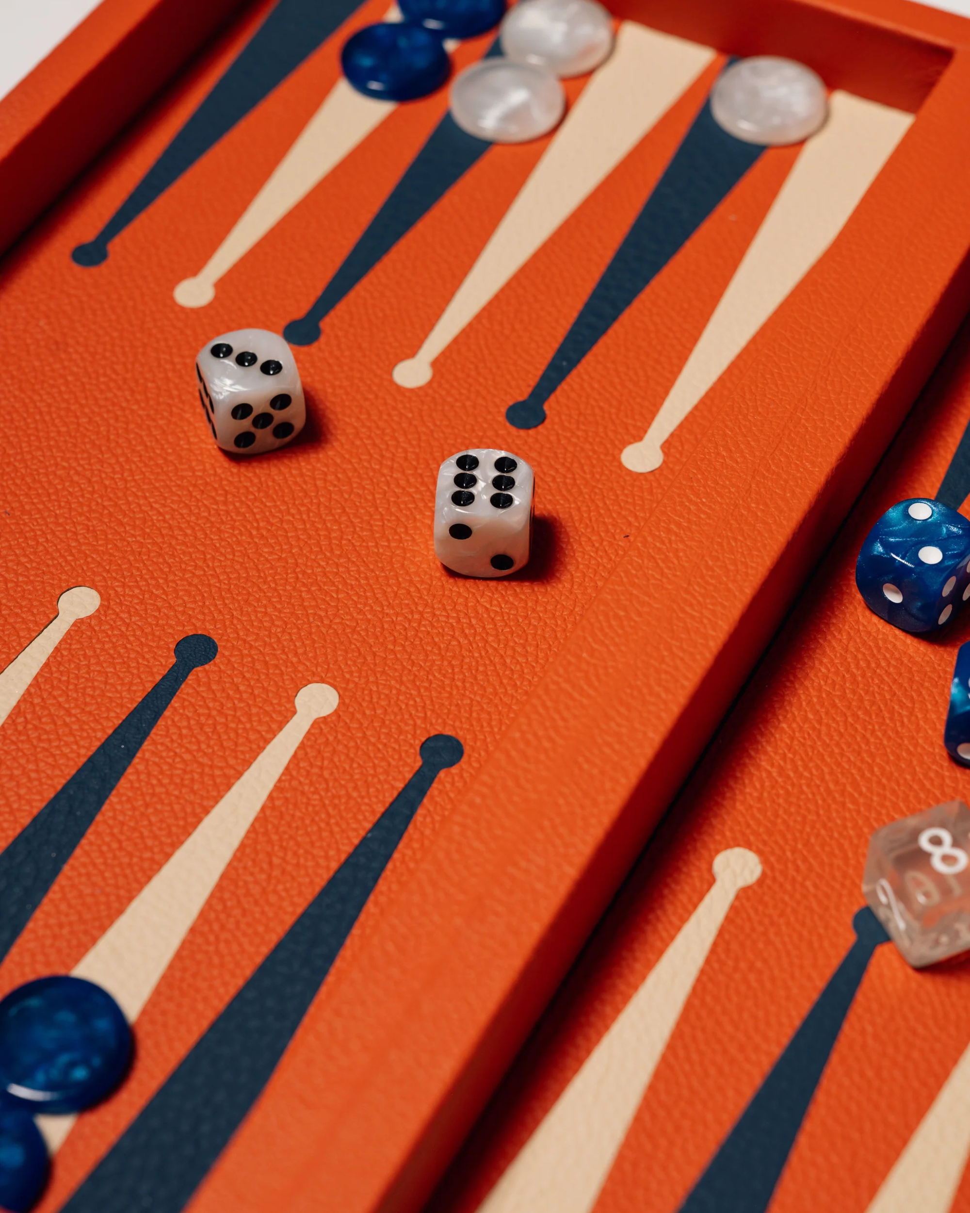 Este folleto de backgammon de cuero es compacto, bellamente hecho y diseñado para encajar perfectamente en tu vida—ya sea en casa, en un viaje o empacado para un fin de semana. Está hecho de cuero real, con marcas naturales que hacen que cada uno se sienta personal. El tablero se pliega para revelar un diseño limpio y audaz con triángulos de colores y un cierre magnético suave que mantiene todo en su lugar. En su interior, incluye todo lo que necesitas: 30 piedras de resina, cuatro dados y un cubo de duplicación.