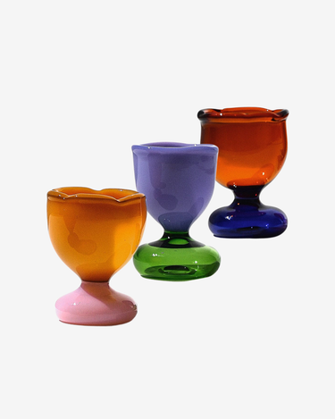 Playful, wavy, and full of character, the Yolkie Egg Cup Trio brings a spark of whimsy to the table. Each piece is mouthblown without molds, shaped from borosilicate glass that lets two swirling colours dance together in unexpected ways. Designed for far more than breakfast, these sculptural little cups slip easily into any setting — from a leisurely brunch to a candlelit dinner, or even as miniature vessels for salt, sauces, or small bites. Light, expressive, and full of personality, the Yolkie Trio turns simple moments into something worth savouring.