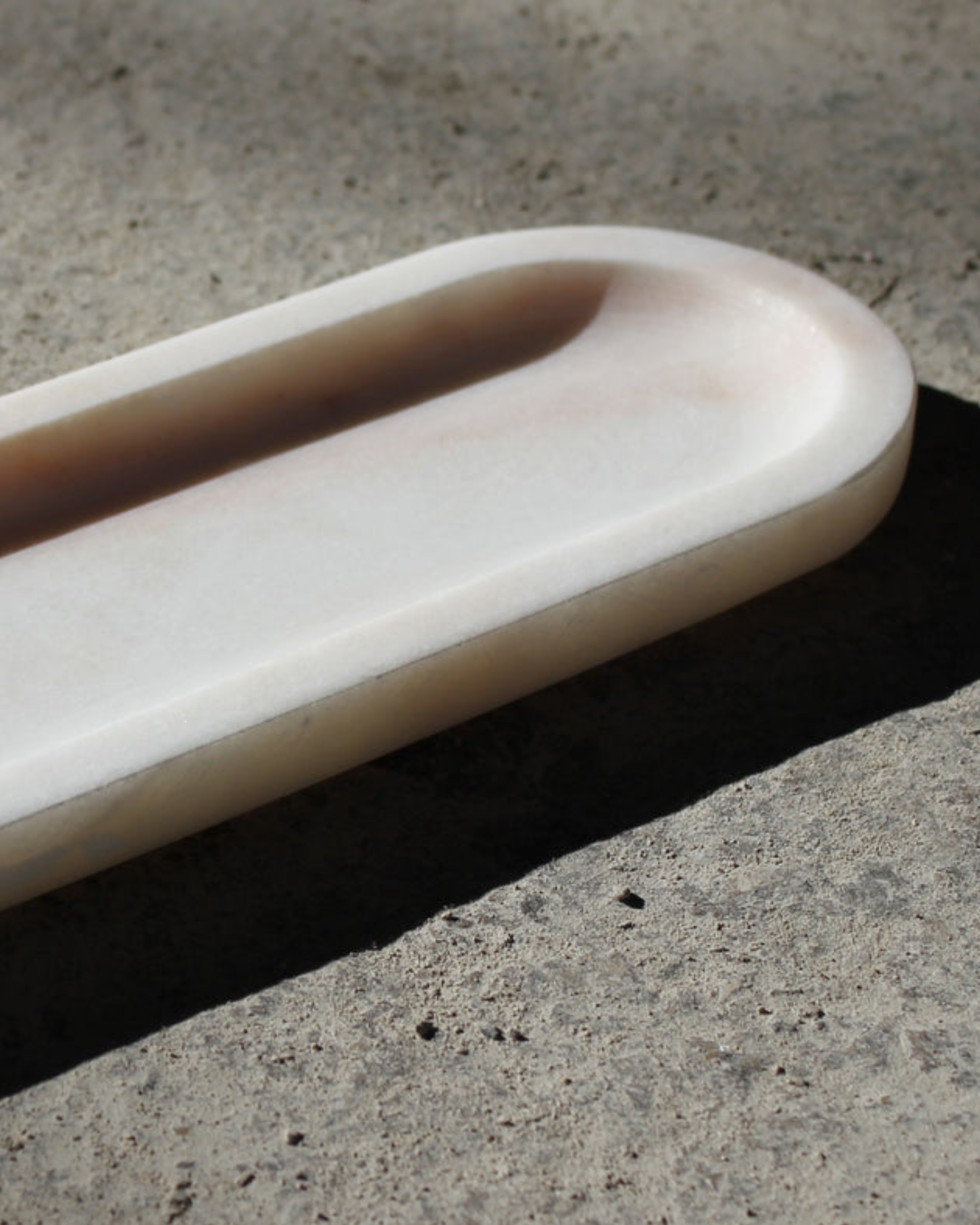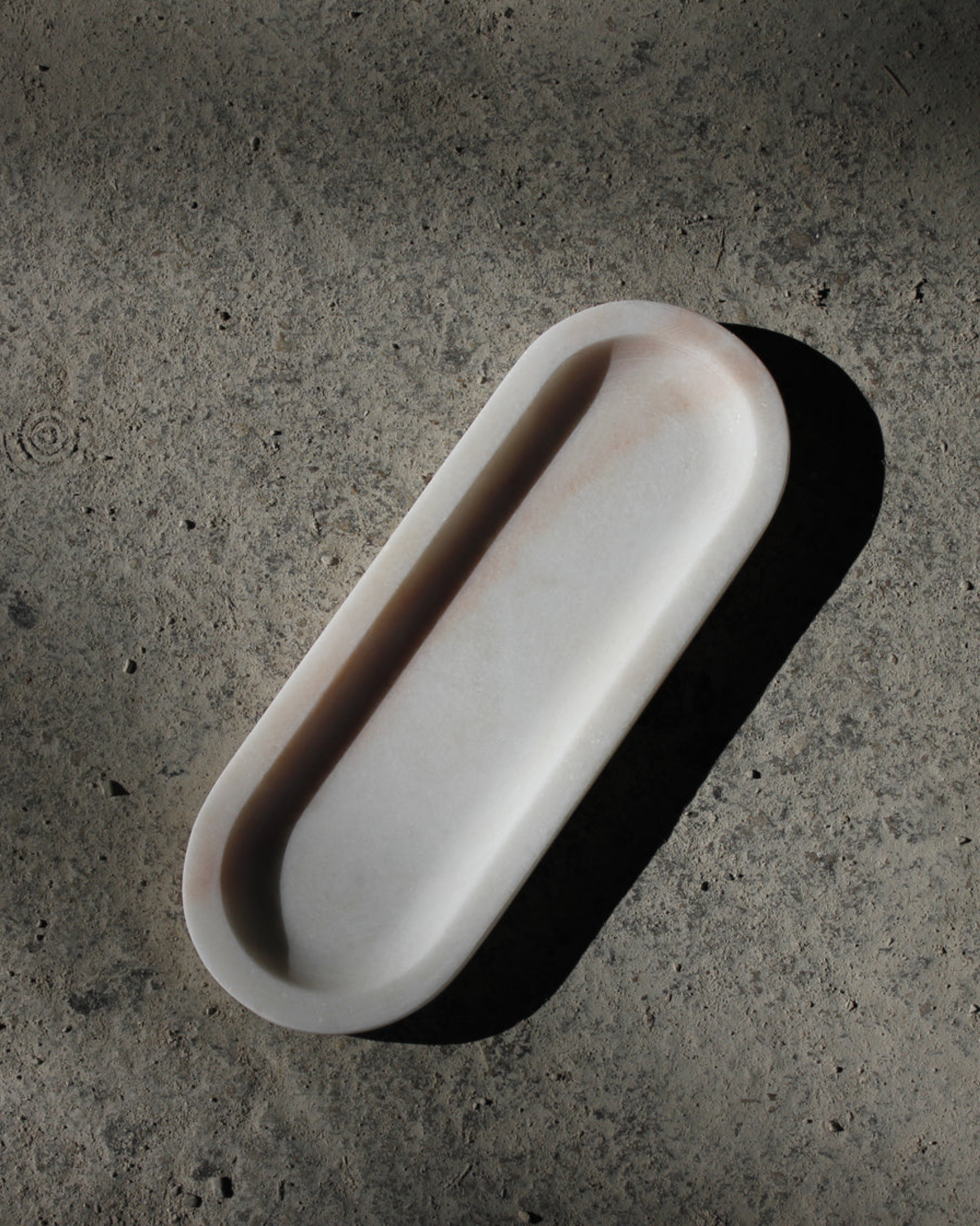 Hand-finished in Apulia from rare reclaimed marble. Smooth to the touch and softly polished to reveal the stone’s natural hue and veining, it’s a sculptural accent for serving, styling, or simply admiring.